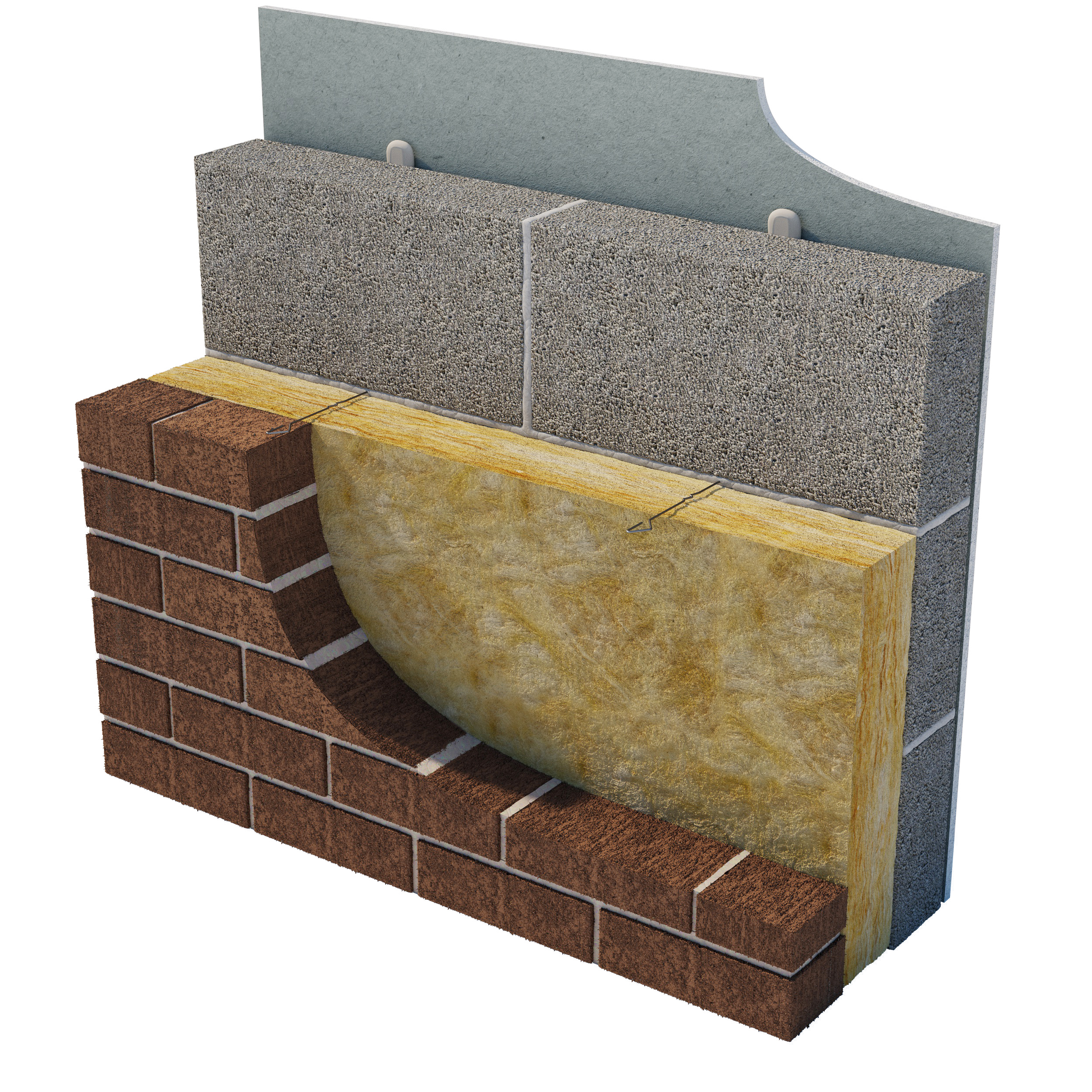 Blown thermal and acoustic insulation for use in new build masonry party/separating walls.