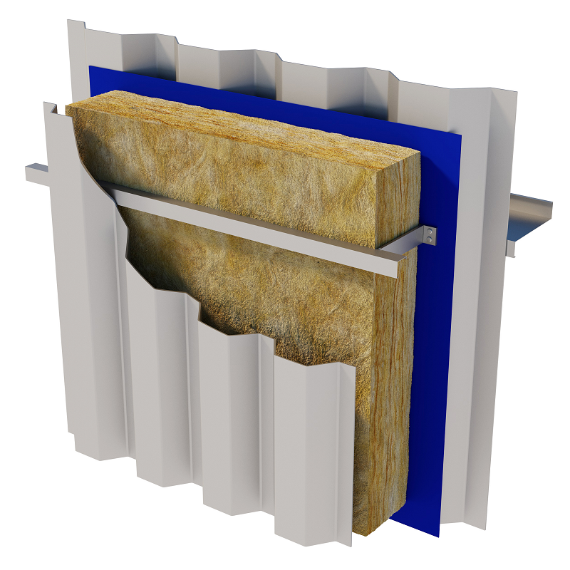 Thermal and acoustic insulation for use in twin skin metal clad systems.